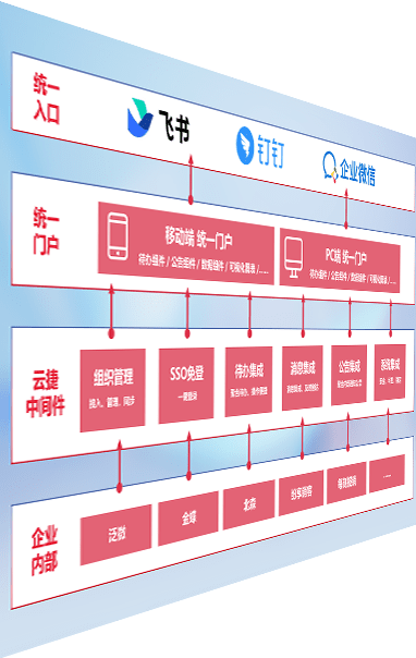 对协作平台提供支持服务,,支持企业应用与协作平台对接,,,包含组织同步、、消息集成、、、、待办集成等。。。支持目前主流的协作平台:钉钉、、企微和飞书。。。